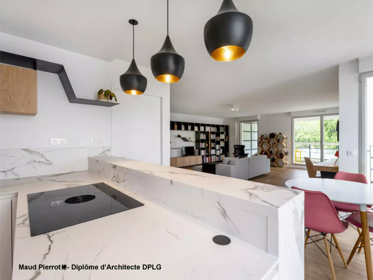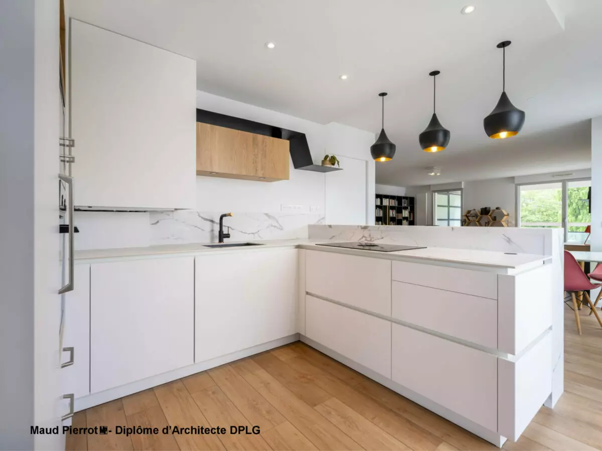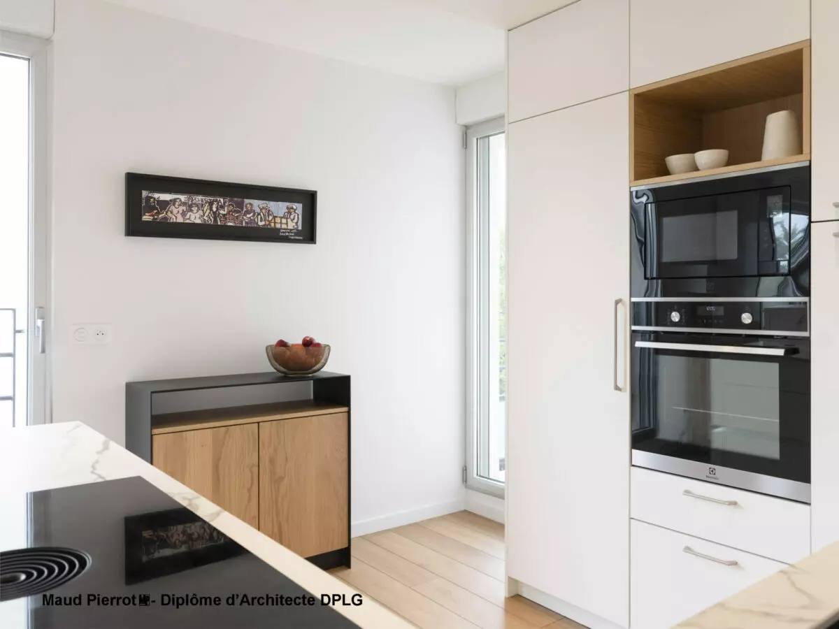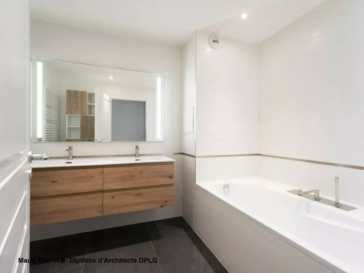 Notre projet consistait à rénover l’ensemble de notre appartement (sol, peinture, cuisine, salles de bains, une chambre, et mobilier sur mesure). Maud a pris le temps d’écouter nos attentes et a su proposer un projet en accord avec nos besoins. Elle combine une expertise d’architecte pour trouver les solutions de rénovation et des talents de décoratrice d’intérieur pour aiguiller dans le choix de mobilier. Le plus pour nous a été la mise en place et le suivi de chantier : cohésion entre les différents corps d’artisans investis et coordonnés par Maud, respect des délais, qualité des finitions et SAV en cas de problème, le tout dans une ambiance agréable.