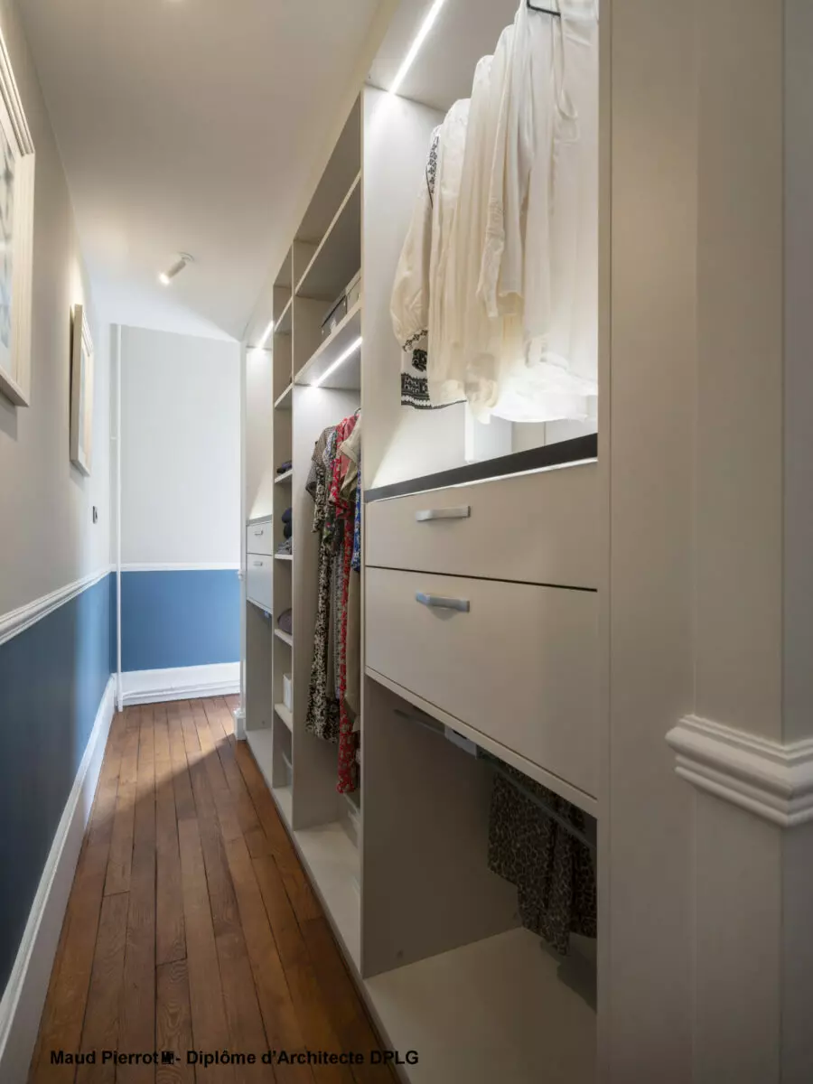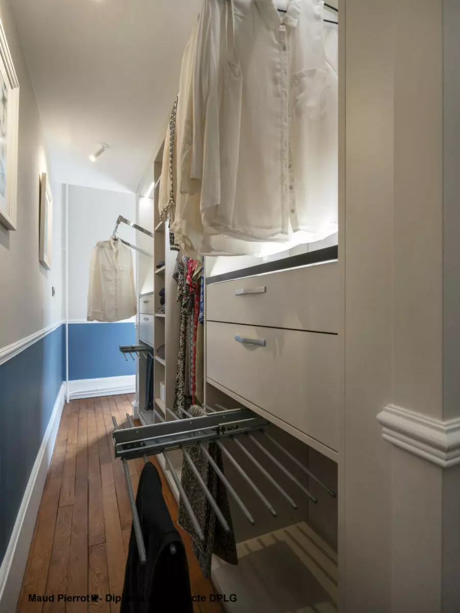 Avis client: Maud nous a accompagnés dans la restructuration d’une vaste chambre parentale avec création d’un dressing au sein d’une maison de 1909. Elle a répondu à notre souhait de moderniser l’ensemble tout en conservant les volumes et le charme de la pièce. La qualité du projet, des matériaux utilisés et des entreprises engagées aboutit à un merveilleux résultat.